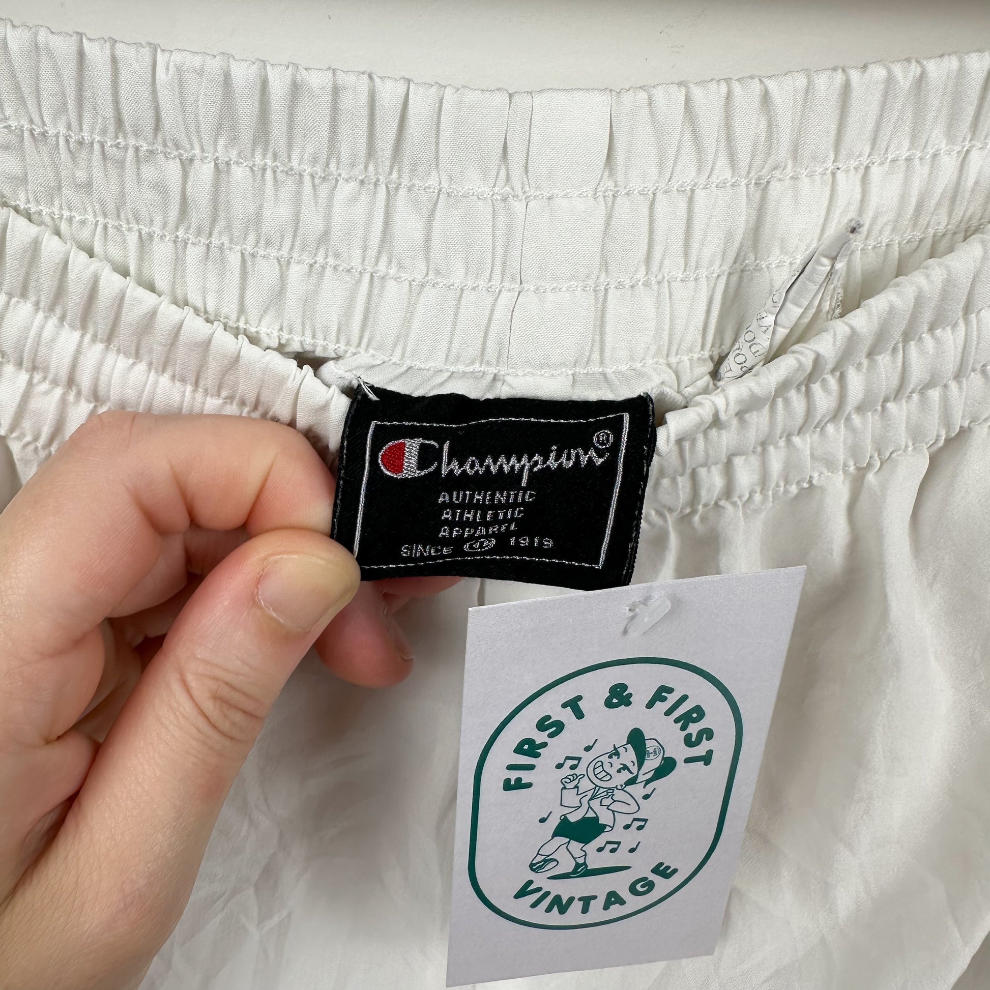 Vintage Champion White Button Nylon Track Pants - M